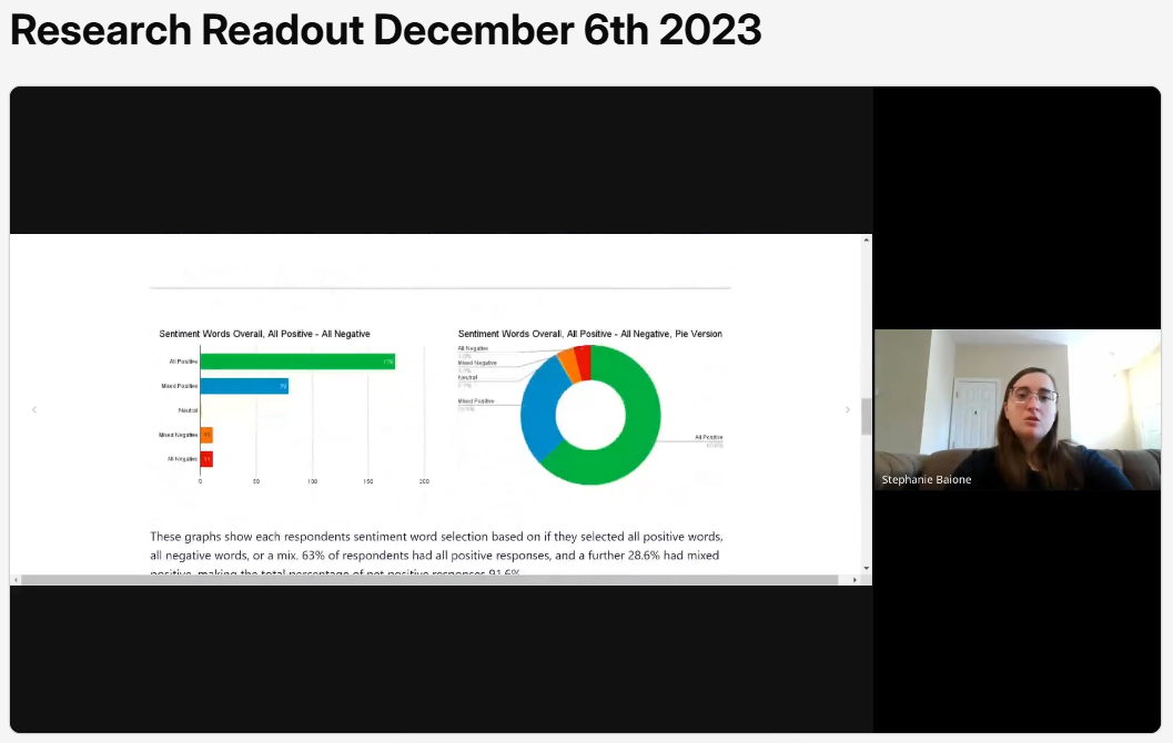 Reveal's coaching features had a rolling launch in the latter half of 2023, and the first round of quarterly recurring post-launch feedback/product-market fit surveys launched in Q4. I collaborated with the other coaching researchers to propose survey questions, swarm the data analysis, and share our learnings.